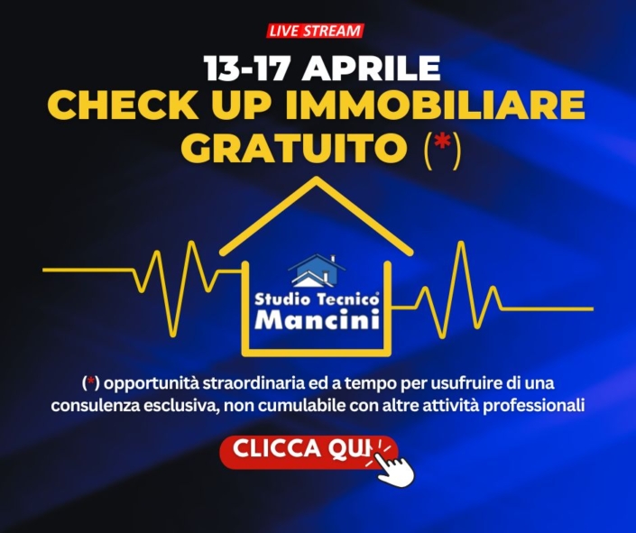 Le nostre consulenze tecniche hanno un valore, ma le persone ne hanno di più e per questo motivo lo Studio Tecnico Mancini ha deciso di dedicare una settimana al mese di CHECK UP CASA GRATUITO per aiutarvi a risolvere i vostri problemi tecnici con le case.